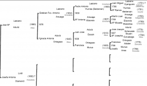 Aitona-amonak aitaren aldetik Nafarroako Garzaingo Miguel Lazcano eta Nafarroako Igantziko Catalina Josefa Oyanguren ziren, eta amaren aldetik Usurbilgo Domingo Yturriza eta Zizurkilgo Luisa Beldarrain.
